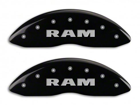 Constructed with Thought and Care. Lightweight and durable, MGP black caliper covers w/RAM logo are fabricated from 6061-T6 aerospace aluminum, TIG welded for strength, and finished in black powdercoat for style and corrosion resistance. RAM logo is laser-engraved in silver on front and rear of all four caliper covers. Patented stainless steel fastening system secures with a locking nut.