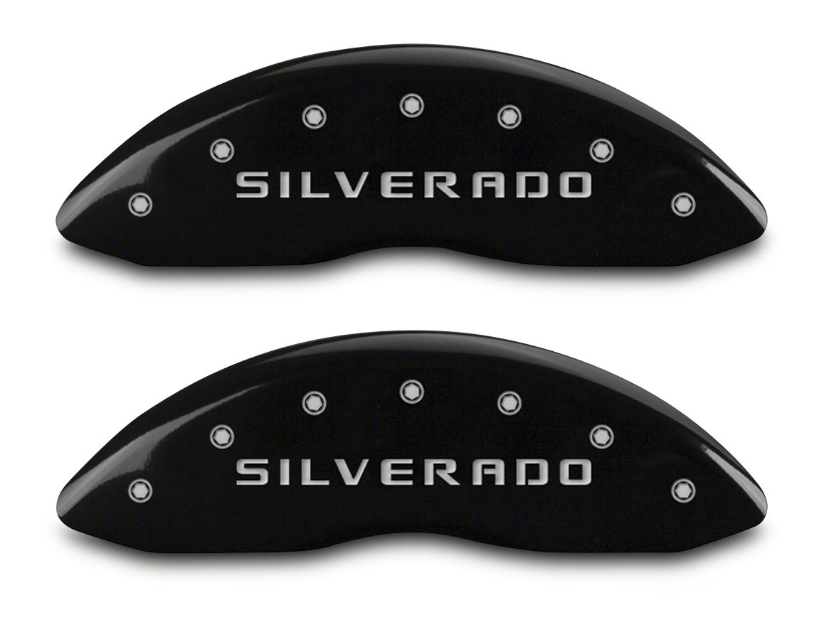 Optimum Performance: MGP Black Caliper Covers w/ Silverado Logo - Front & Rear has been produced using aerospace-grade aluminum. The attractively unique Caliper Covers lowers the temperature, for increased performance.