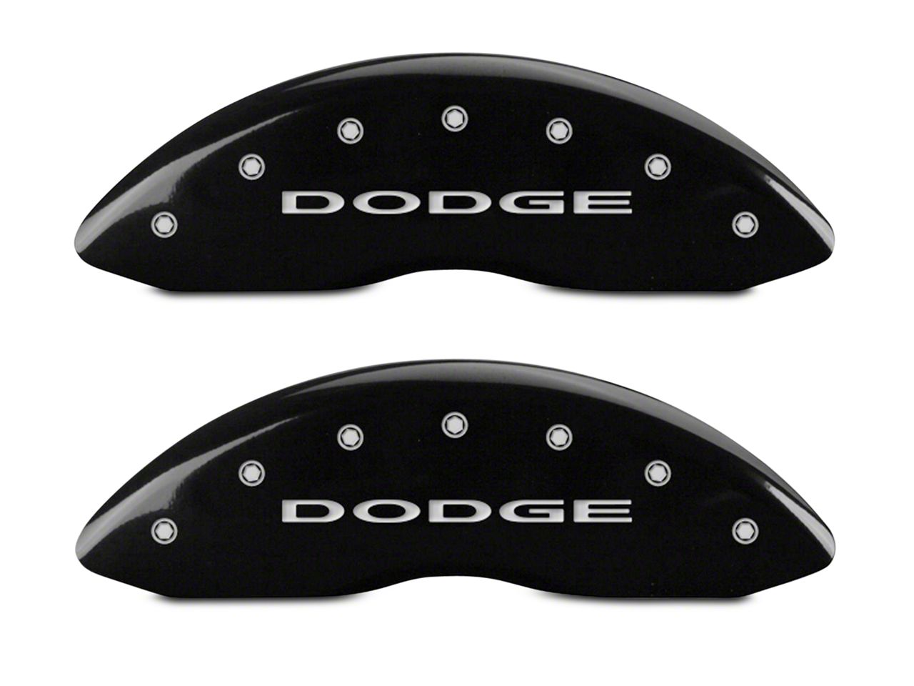 Embossed Lettering. These MGP Black Caliper Covers with Dodge Logo - Front & Rear effectively balance form and function. You can use them to add a customized look with their embossed Dodge lettering to your 2002-2005 RAM. Using these calipers will lessen caliper heat so that brake fade is reduced, leaving your wheel looking cleaner.