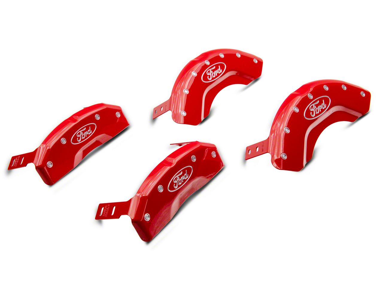 Application. These Front and Rear MGP Red Caliper Covers with Ford Oval Logo are designed to fit all the 2021-2026 Ford F-150 models. These caliper covers require 18-inch wheels or larger.