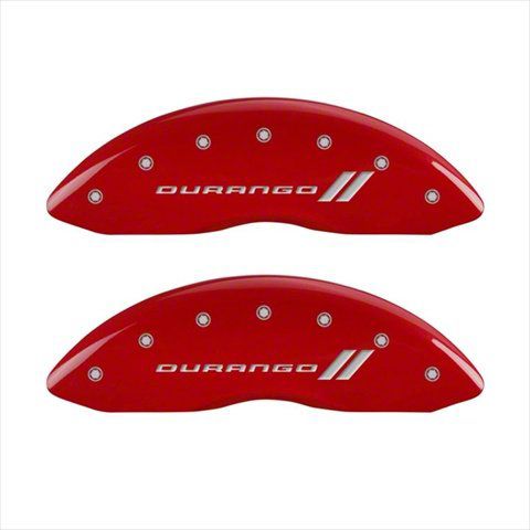 Description. Disc Brake Caliper Cover; Set of 4 caliper covers, Engraved Front and Rear: With stripes/Durango, Red powder coat finish, silver characters.