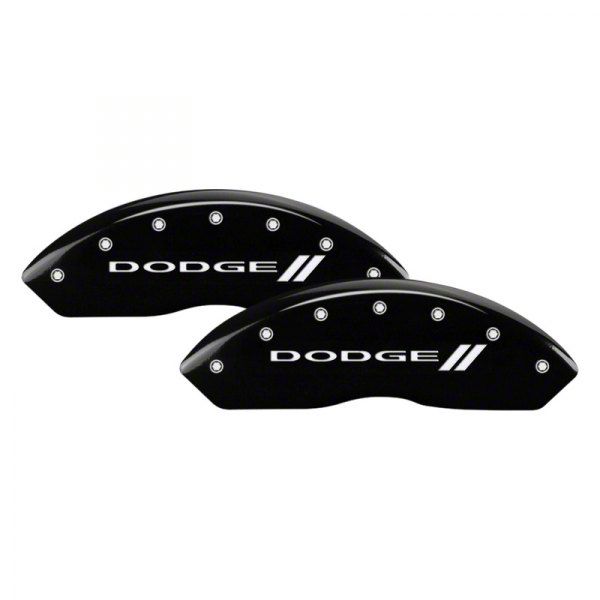 MGP Brake Caliper Covers with Dodge Stripes Logo; Black; Front and Rear (2010 RAM 3500 SRW)Find parts that fit my vehicle