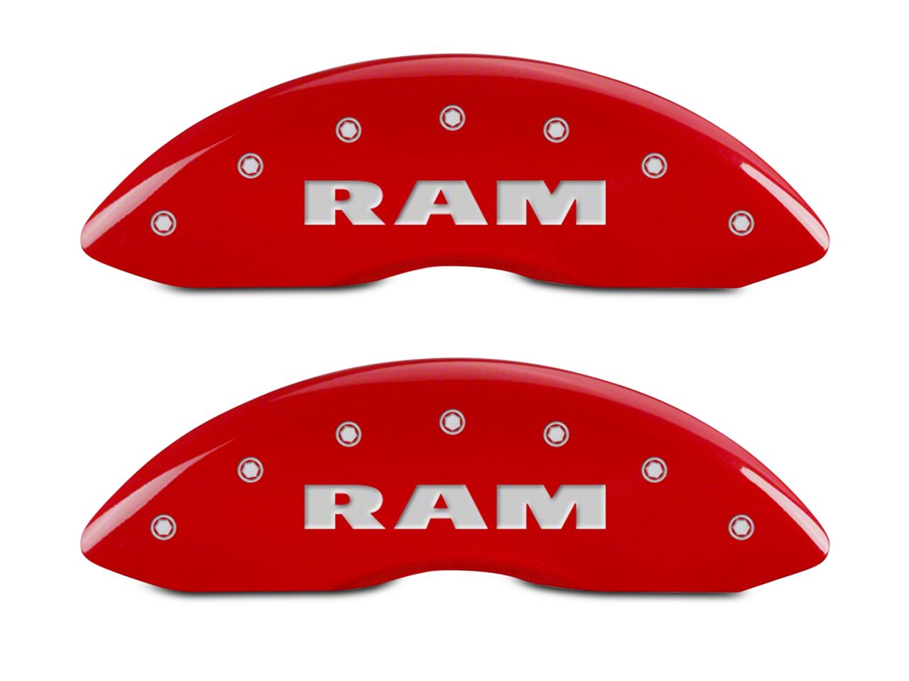 Refreshing Style. Refresh the style of your 2002-2005 Dodge RAM with the MGP Red Caliper Covers that have the unique RAM logo. These covers are the perfect addition for the wheels on your truck. Demonstrate your bold personality with engraved lettering made with innovative, CNC high-speed technology. The covers will effectively hide dirty brake calipers. When using these covers, brake dust is reduced so your wheels will be cleaner, and caliper heat is reduced, lessening brake fade.