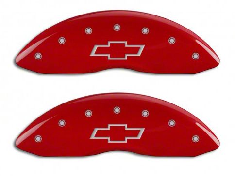 Custom Wheel Accents. Command the attention that you deserve with a custom styling touch to your Rig with a unique big brake appeal by installing the MGP Red Caliper Covers with Bowtie Logo. This set of front and rear caliper covers come with a Bowtie embossed to give a sleek custom touch that stands out whether at rest or at motion.