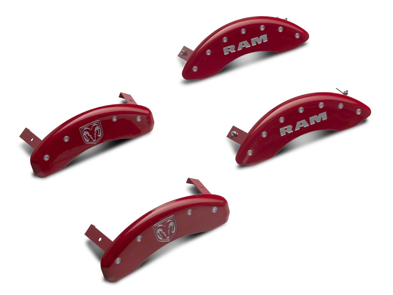 Powerful Sporty Look. Customize your RAM 1500 and rock the streets with the sleek and clever design of these Front and Rear MGP Red Caliper Covers with RAMHEAD Logo. It has a sporty red color that peeks through the rims of your car and easily stands out from the rest of the wheel with a bold appearance. The design is further complimented by a RAMHEAD logo, precisely engraved on the cover to perfection.