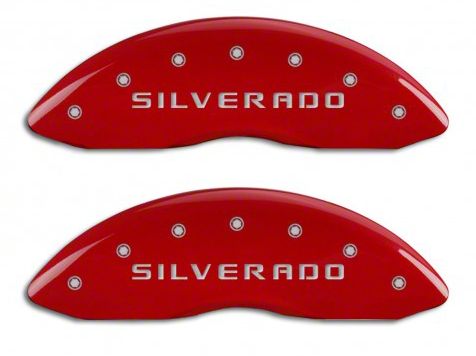 Unique Style Upgrade. Introduce a custom touch to your Rig with a unique big brake appeal by installing the MGP Red Caliper Covers with Silverado Logo. This set of front and rear caliper covers come with a Silverado Logo embossed to give a sleek custom touch that stands out whether at rest or in motion. The covers are not only appealing but also functional.