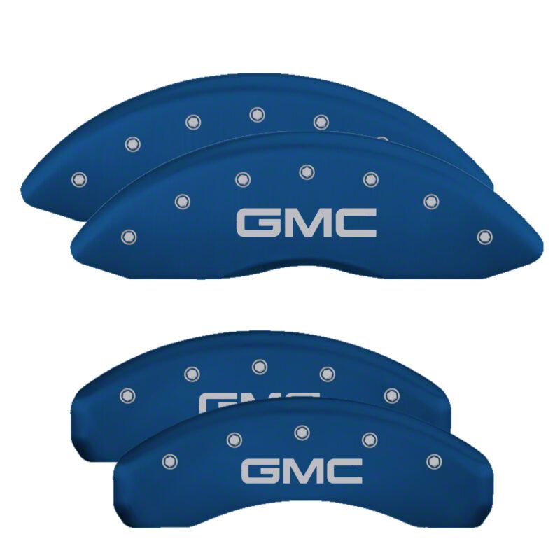 MGP Brake Caliper Covers with GMC Logo; Blue; Front and Rear (19-26 Sierra 1500)Find parts that fit my vehicle