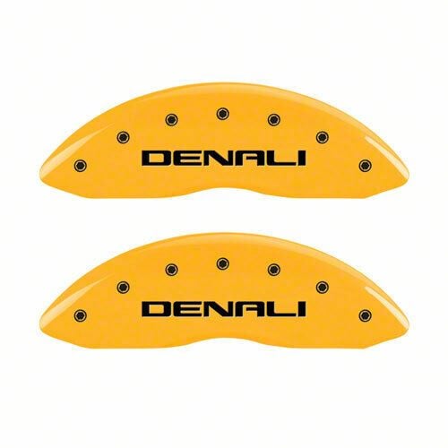 Custom Styling. Add a "big brake" appearance to your GMC Sierra with a set of front and rear gloss yellow MGP Caliper Covers. These officially licensed MGP Brake Caliper Covers feature the Denali logo embossed in them for true custom styling. Whether you're accenting your new wheels or just adding some extra flare to your ride, a set of MGP caliper covers will be sure to turn heads.