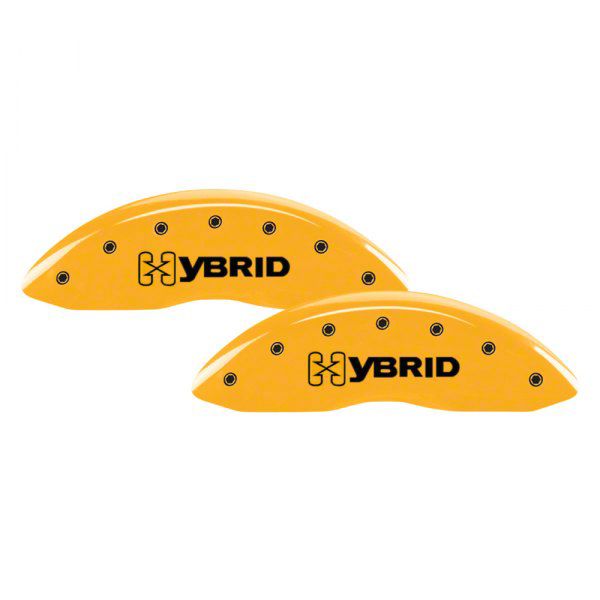 Clean Custom Brake Styling. The MGP Brake Caliper Covers with Hybrid Logo are designed to enhance the appearance of your braking system with a sleek, modern touch. Featuring a bold yellow finish and engraved Hybrid logo, the MGP Brake Caliper Covers with Hybrid Logo provide a refined look behind your wheels. They also help reduce brake dust buildup on wheel surfaces while delivering a custom aesthetic upgrade.