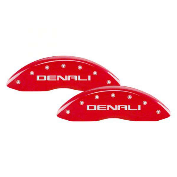 MGP Brake Caliper Covers with Denali Logo; Red; Front and Rear (11-19 Sierra 3500 HD SRW)Find parts that fit my vehicle
