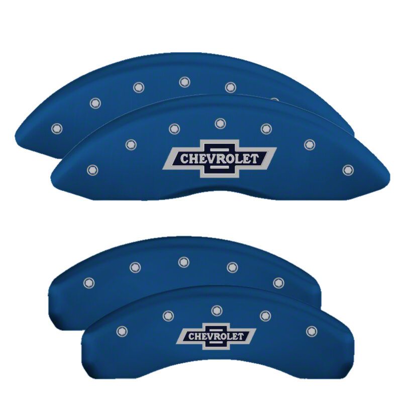 MGP Brake Caliper Covers with 100 Anniversary Chevrolet Logo; Blue; Front and Rear (19-26 Silverado 1500)Find parts that fit my vehicle