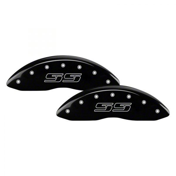 MGP Brake Caliper Covers with Avalanche Style SS Logo; Black; Front and Rear (01-04 Silverado 2500 HD)Find parts that fit my vehicle