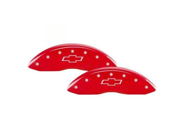 Adds a More Stylish Look. If you want your truck’s wheel area to sport a more stylish look, then install these Front and Rear MGP Red Caliper Covers with Bowtie Logo. Completed with a gloss red powder coat finish and engraved with the Bowtie logo, these caliper covers help improve your wheels’ curbside appeal while hiding your brake calipers’ existing blemishes.