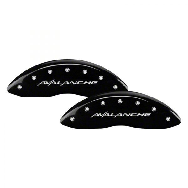 MGP Brake Caliper Covers with Avalanche Logo; Black; Front and Rear (04-06 Silverado 3500 HD SRW)Find parts that fit my vehicle