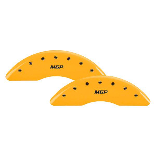 MGP Brake Caliper Covers with MGP Logo; Yellow; Front and Rear (11-19 Silverado 3500 HD SRW)Find parts that fit my vehicle