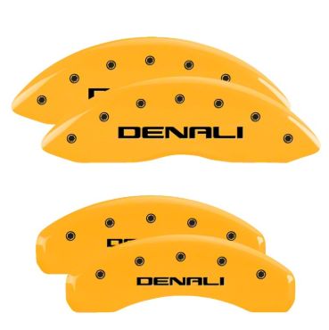 Custom Caliper Styling. These MGP Yellow Caliper Covers with the Denali Logo is best for covering the imperfections of your old brake caliper as well as show off your GMC Sierra 1500's rims. They feature CNC-engraved Denali logo with a black inlay on a bright yellow finish. With these covers, there’s no need to wait for hours or spend hundreds on getting your brake calipers painted.