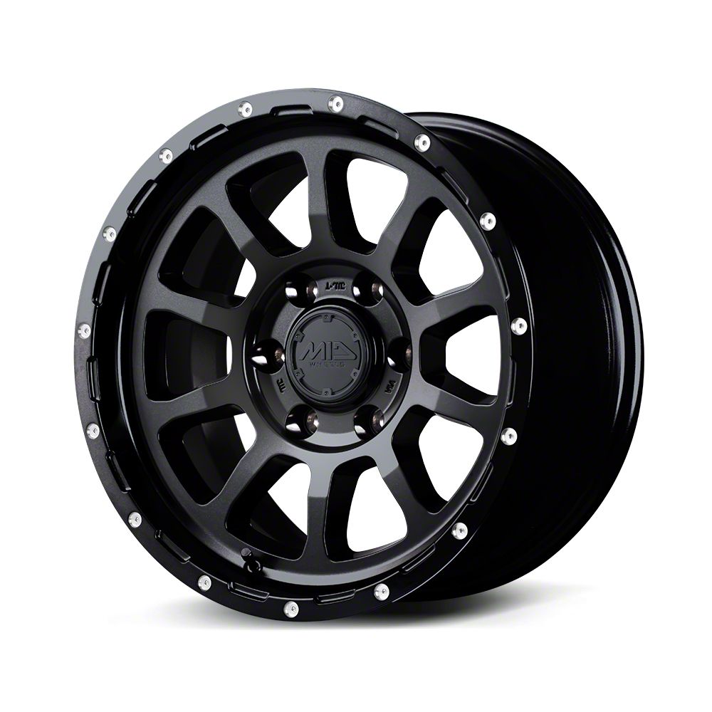 MID Wheels by RAYS M10 Semigloss Black 6-Lug Wheel; 17x8.5; 0mm OffsetThe MID Wheels by RAYS M10 Semigloss Black 6-Lug Wheel brings a distinctive design and a robust visual profile, ideal for drivers looking to make a statement. Its finish and multi-lug pattern make it a prime choice for those who value aesthetics as much as strength. With dimensions tailored for presence and style, it's a great match for trucks or off-road builds. A perfect blend of style and ruggedness.