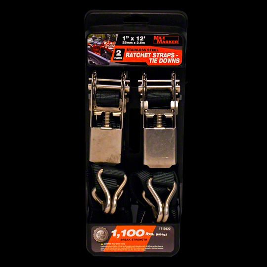 Mile Marker 1-Inch x 12-Foot Ratchet Straps; 2-Pack