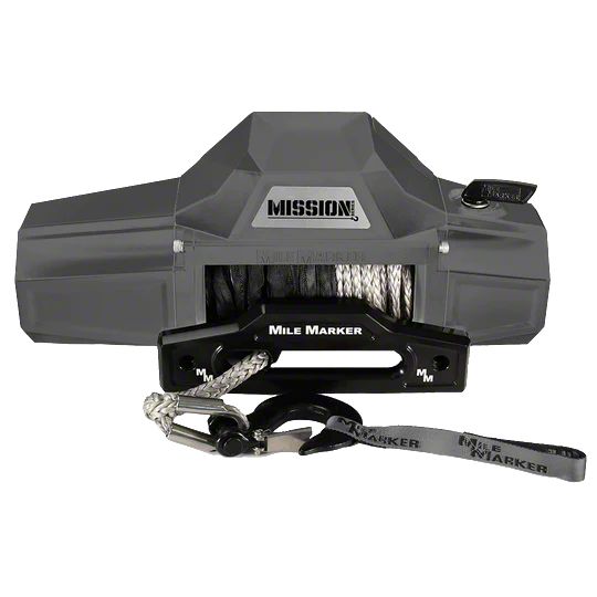 Application. The Mile Marker 12,000 lb. Mission Winch with Black Synthetic Rope and Black Hook offers universal fitment.