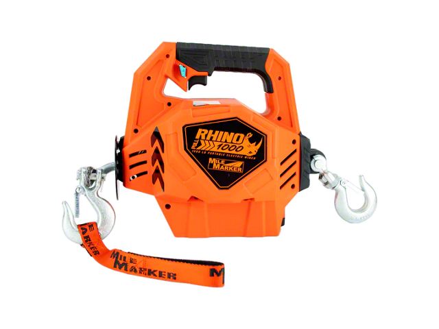 Winch On The Go. Never have to worry about pulling anything that is in your way with the Mile Marker Rhino Pull 1000 Portable Electric Winch. This portable winch has the capacity for vertical lifting or horizontal pulling for items up to 1,000 pounds. This winch runs on a quiet and effective brushless motor with digitally operated modules. Lifting and pulling wherever you are is easy-breezy with this portable electric winch.