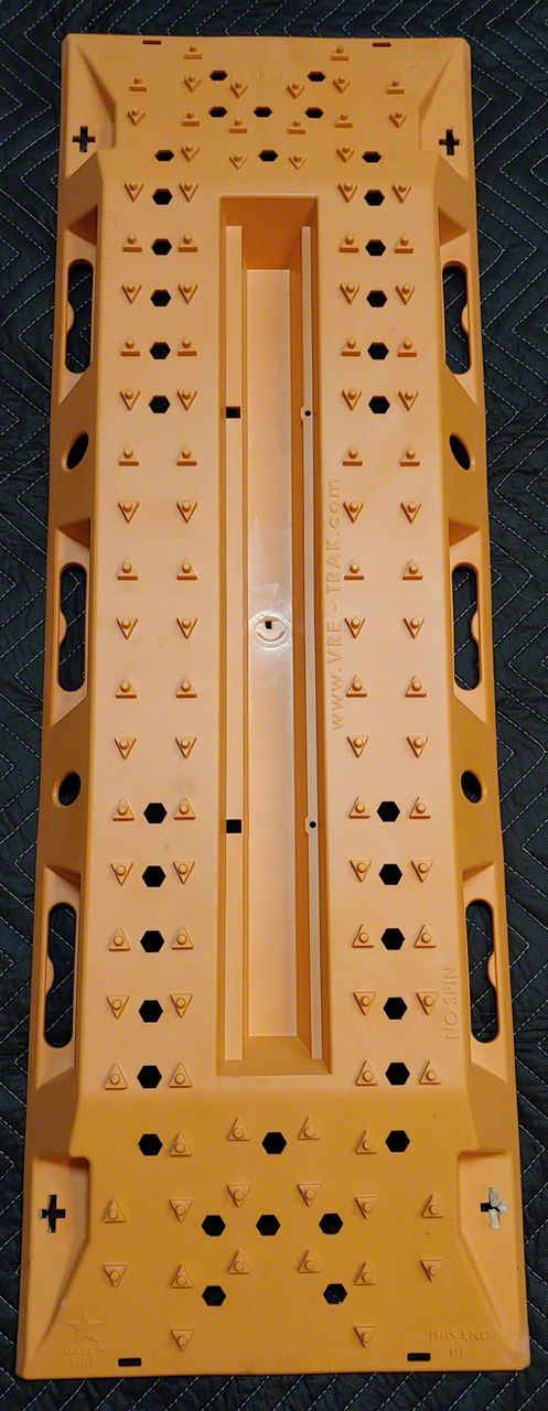 VRE-TRAK-HDs are made from a special plastic formula that can handle extra heavy vehicles up to 35,000 lbs+ and is suitable for the most adverse conditions and abuse. Free VT-LEASH (8-FT Safety Orange) with every purchase. Simply clear debris around stranded vehicle tires that slip/spin and wedge VRE-TRAKs under the front of slipping tire and slowly pull forward. Easy to use; providing Instant Traction to get out of the worst conditions. Now with New Special Order Accessory “Bridge Insert” to span gaps in rock for Bridging or Super Heavy Duty Vehicles.