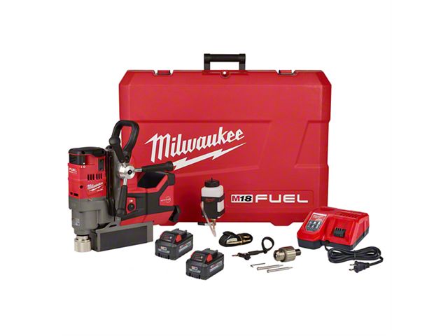 The M18 FUEL™ 1-1/2 in. magnetic drill drills faster than the number one corded competitor, delivers the strongest magnetic hold on 1/4 in. steel providing a safer drilling environment in this material, and drills over (75) 13/16 in. holes per charge. By utilizing permanent magnets, the magnetic base operates without electricity; ensuring that the magnet does not deactivate if the battery is drained. Equipped with auto-stop lift-off detection, power to the motor is automatically cut if excess rotational motion is detected while drilling. Powered by a Milwaukee POWERSTATE™ brushless motor, both drills are faster than their corded counterparts, and deliver the same 1-1/2 in. annular cutter capacity. REDLINK Plus™ intelligence is the most advanced electronic system on the market, preventing damage to the tool and battery caused by overloading or overheating. The M18™ REDLITHIUM™ HIGH DEMAND™ 9.0 battery pack delivers up to 5X more run time, 35% more power, and runs 60% cooler than standard 18 V lithium-ion batteries. It maintains full power and runs substantially cooler through heavy applications, allowing users to push their cordless tools harder and longer than ever before. The M18™ REDLITHIUM™ HIGH DEMAND™ 9.0 battery is fully compatible with 150+ M18™ tools.