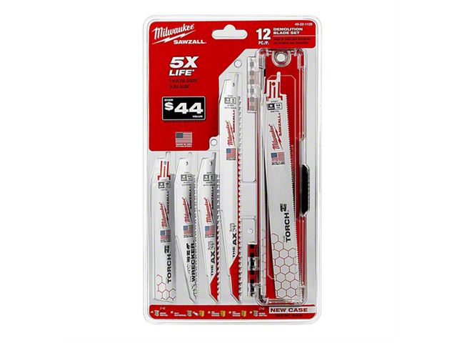 The 2-Piece SAWZALL® Demolition Blade Set features an assortment of our most popular demolition blades for a broad range of professional applications. MILWAUKEE® demolition SAWZALL® blades are thicker for maximum durability and taller for straighter cuts. This set features The AX™ for cutting nail embedded wood, The Wrecker™ for your general demolition cutting and The Torch™ for metal cutting. An adjustable, durable storage case is included and can hold up to 9” blades.