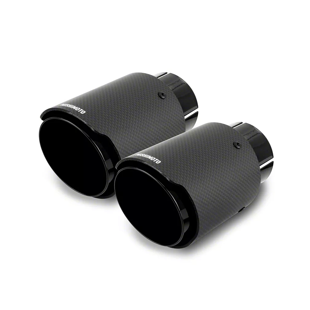 Application. Designed to fit all vehicles with 2.50-inch tailpipes, the Mishimoto Carbon Fiber Exhaust Tips are a universal solution for enhancing exhaust aesthetics on a wide range of models.