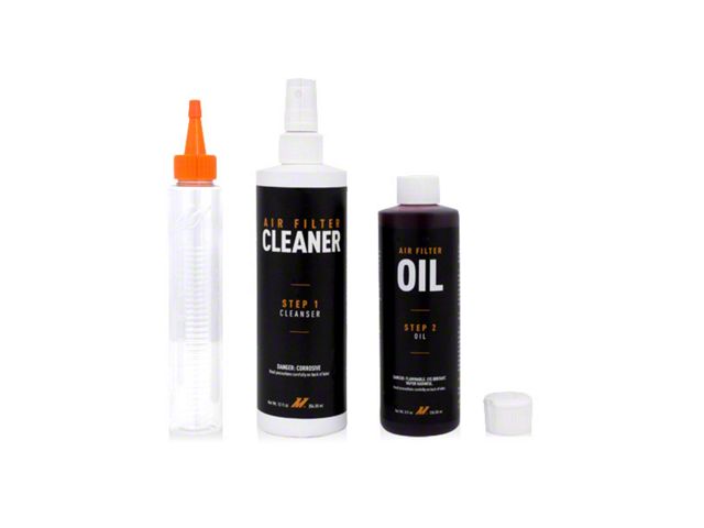 Complete Re-Oil Kit. This air filter re-oil kit contains everything you need to restore your air filter’s smooth performance. This kit includes an easy-spray cleaner bottle that comes with 12oz of cleaning fluid. It also comes with an 8oz of filter oil as well as an applicator bottle with an orange lid. The applicator bottle helps you to precisely apply the oil to your air filter, preventing the oil from flowing anywhere.