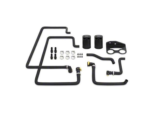 Durable Construction. This kit is built to last, featuring heavy-duty 6061 T-6 billet aluminum catch cans with an anodized finish, premium hoses, factory-grade quick connectors, and a powder-coated steel mounting bracket.