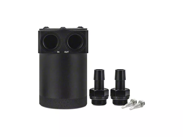 Aluminum Material. Tired of oil from your crankcase building up in your engine? Look no further than the Mishimoto Universal Baffled Oil Catch Can (Parallel Port). Furthermore, it is designed with a 2-inch 1 and 2 fitting size, as well as an aluminum separator tank material.