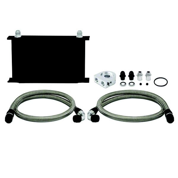 Efficient Design. Mishimoto's universal Engine Oil Cooler is a premium and well-engineered product designed to provide your vehicle with maximum cooling efficiency and robust construction. The heart of this kit is Mishimoto’s premium 25-row stacked plate cooler, engineered to withstand extreme temperatures and provide exceptional heat dissipation, all while losing minimal fluid pressure for maximum efficiency.