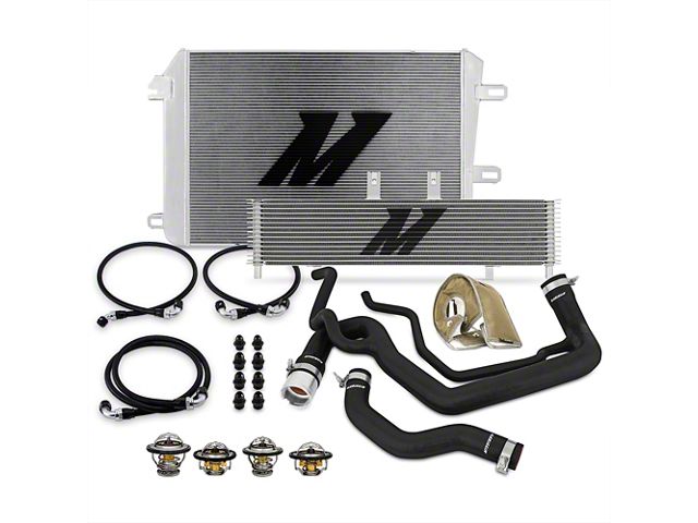 Description. Restore and enhance your cooling system with the Mishimoto Ultimate Bundle. The Mishimoto Ultimate Bundle includes high-quality upgraded cooling components to replace items we've found to be the most failure-prone. For the 2006-2010 Chevrolet/GMC 6.6L Duramax, we've bundled together our aluminum radiator, silicone radiator hose kit, high-temperature thermostat, low-temperature thermostat, transmission cooler, transmission cooler line kit, and titanium turbo blanket. As the stand-out component, our aluminum radiator features full aluminum construction with durable TIG-welded end tanks. In addition, this radiator is designed with a massive 2-row 2.2-in thick core, which provides substantial improvements in cooling efficiency. To supplement our robust radiator, we've included our incredibly durable silicone radiator hose kit. This Mishimoto Silicone Radiator Hose Kit is constructed from four layers of silicone with heat-resistant embedded fibers. Other engine coolant enhancements within this bundle include our pair of thermostat sets for the 6.6L Duramax. The Mishimoto high-temperature thermostats hasten engine warmup making it ideal for use in cold climates. The Mishimoto low-temperature thermostats allow coolant to flow through the engine earlier, reducing the risk of overheating in hot environments. The Mishimoto Duramax Transmission Cooler provides a 125-percent increase in external fin surface area, resulting in considerable improvements in cooling efficiency. The included transmission cooler lines are pre-assembled and feature a PTFE inner liner for improved heat and pressure tolerance. Finally, our new Titanium Turbo Blanket is rounding out our Duramax Ultimate Bundle, which protects vital engine bay components from excessive heat. Time to re-habilitate the cooling system of your Duramax with the Mishimoto Ultimate Bundle. As with all our products, this bundle includes the signature Mishimoto Lifetime Warranty.