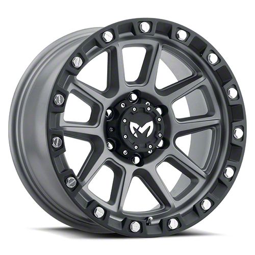 This 17x8.5 MKW Offroad M205 Matte Gray 6-Lug Wheel is completed in a high-quality gray finish that creates an impressive appearance. There's a durable clear coat that will protect against the hazards of driving.One-Piece Cast Aluminum Construction. This wheel is manufactured using gravity casting. Gravity casting is the process of pouring a molten aluminum alloy into a wheel mold or form utilizing the earth's own gravity to help fill the mold. The result is a strong, durable wheel that has the same good looks as a more expensive wheel, at a fraction of the price.