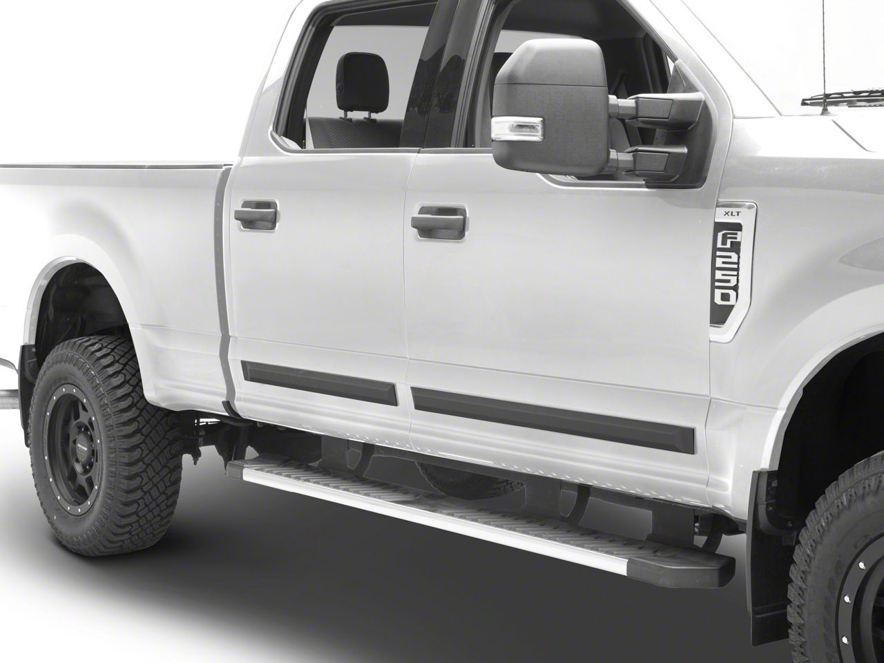 Protection and Style. A set of Matte Black RedRock 4x4 Rugged Look Side Body Moldings are a great and inexpensive way to protect your 1999-2026 F-250 SuperCrew's body panels from scrapes and irritating door dings. These durable Body Moldings not only guard your F-250 from damage, but they give it a more rugged appearance doing so.