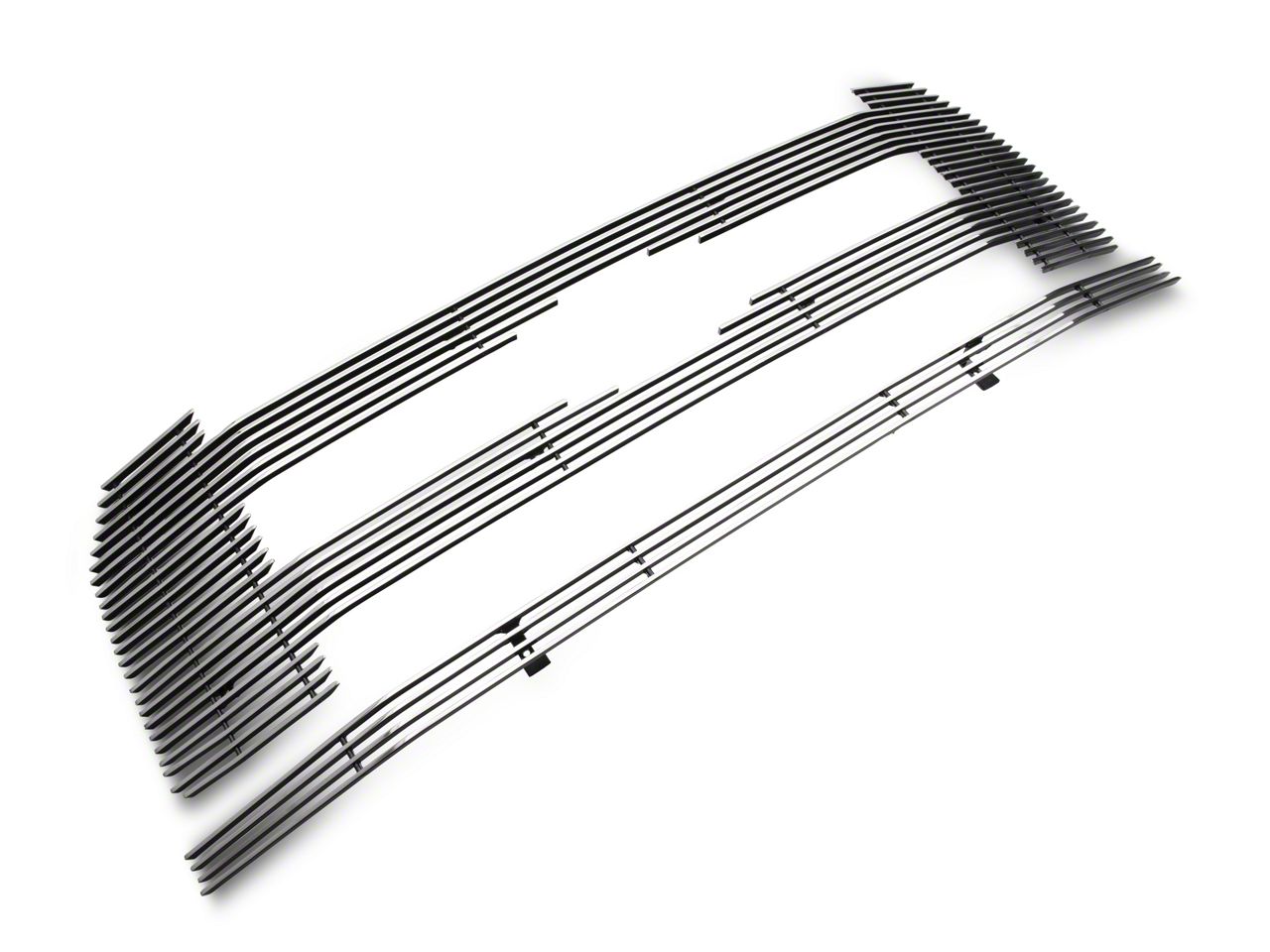 Classic Styling. Update the styling of your F-150's factory XL grille with a Modern Billet 2-Piece Upper Grille Overlay Kit. This polished aluminum Grille Overlay features a classic horizontal bar design that will set your personal F-150 off from all the rest. This Modern Billet Grille is designed as an overlay that simply attaches over the stock upper grille.