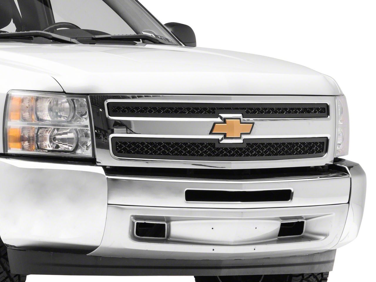 Aggressive Blacked Out Styling. An excellent way to add a more aggressive appearance to your 2007-2013 Chevrolet Silverado is with a SpeedForm Two Piece Wire Mesh Upper Grille Overlay. With a mesh grille design that features a blacked out steel frame, this Grille Overlay will set your Silverado apart from all the rest. This eye-catching SpeedForm Grille is an overlay that simply attaches over your Silverado's stock grille.