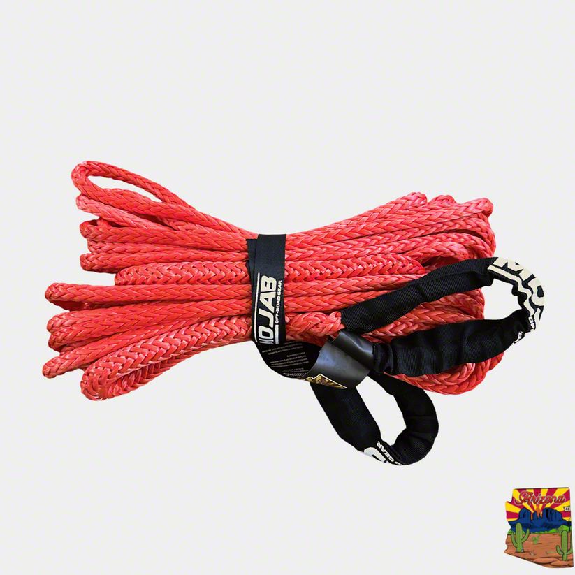 Reliable Recovery Extension. The Mojab Offroad Winch Line Extension offers added reach and capability for your recovery setup. Measuring 3/8-inch thick and 30 feet long, this extension is perfect for overcoming distance limitations during winching. With a minimum breaking strength (MBS) of 16,500 pounds, it’s designed to support heavy-duty recovery operations in tough off-road environments or job sites.
