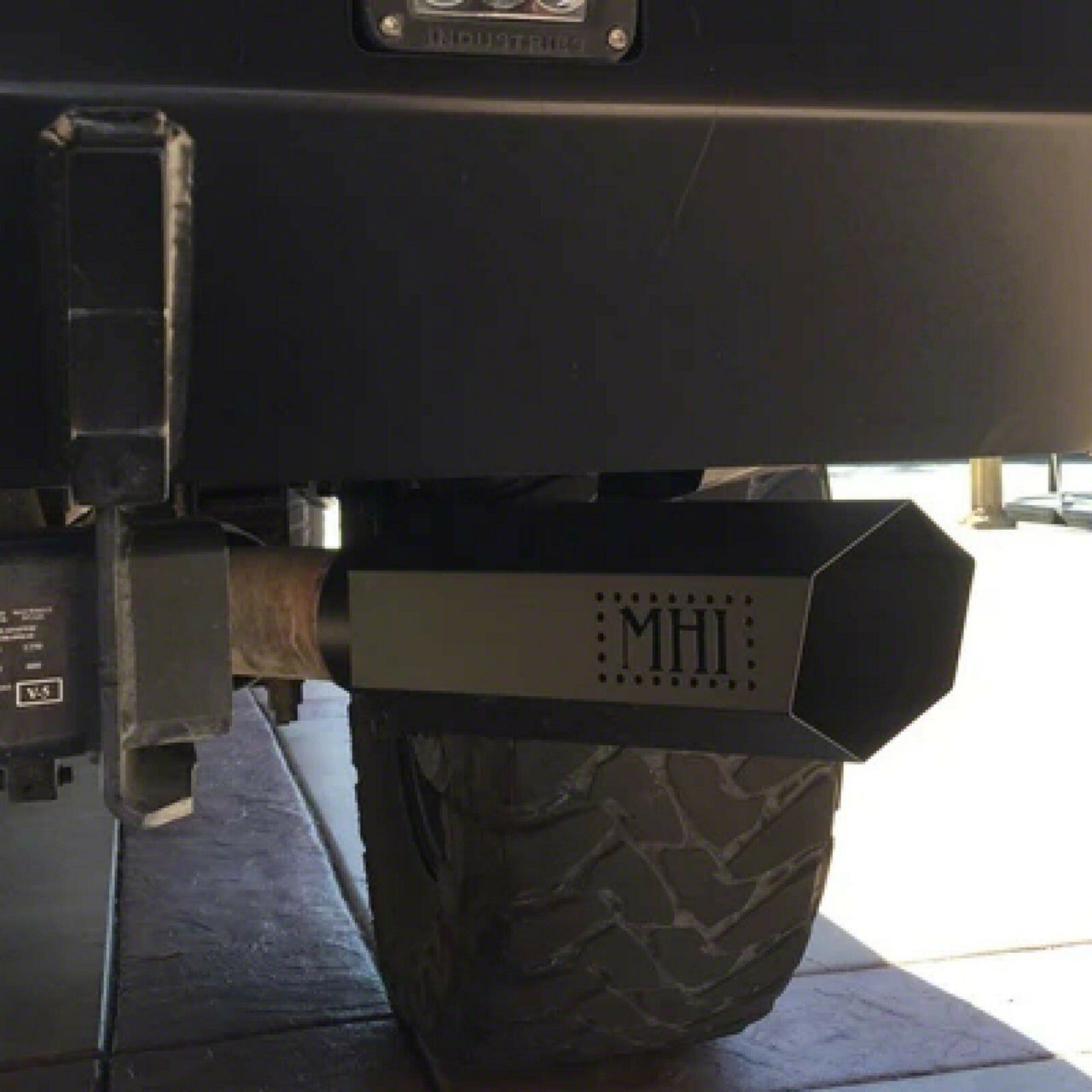 Fit. The Monster Hook Angled Cut Rolled End Round Exhaust Tip has a bigger size of 5 inches, which makes it look great and work better. This bigger size not only makes people notice it because it stands out, but it also helps the engine release exhaust better. This might make your vehicle's engine work better.