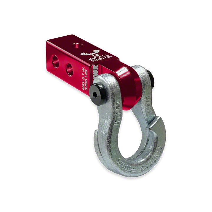 The Jowl Recovery Shackle fits any 2.0 or 2.5 inch D-Ring tow shackle receiver hitch bracket mount with a 7/8" (0.875") pin hole and a mount width of 1-1/4" (1.25") or less.