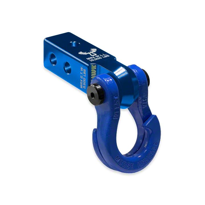 The Jowl Recovery Shackle fits any 2.0 or 2.5 inch D-Ring tow shackle receiver hitch bracket mount with a 7/8" (0.875") pin hole and a mount width of 1-1/4" (1.25") or less.