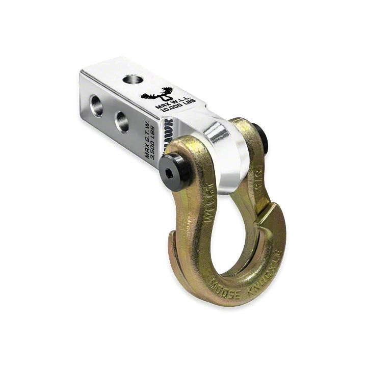 The Jowl Recovery Shackle fits any 2.0 or 2.5 inch D-Ring tow shackle receiver hitch bracket mount with a 7/8" (0.875") pin hole and a mount width of 1-1/4" (1.25") or less.