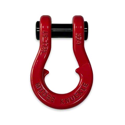 Application. This Moose Knuckle Offroad Jowl Split Recovery Shackle in Flame Red fits universally and requires minimal adjustments.