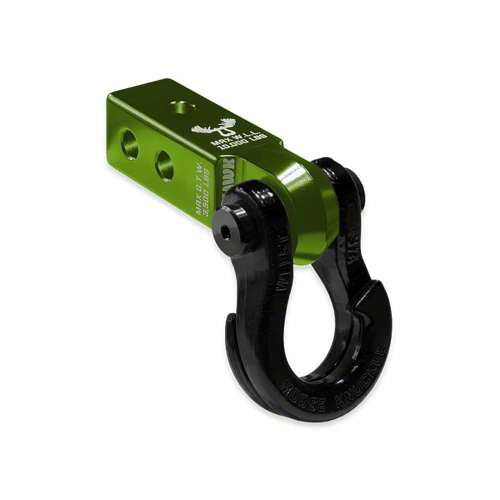 The Jowl Recovery Shackle fits any 2.0 or 2.5 inch D-Ring tow shackle receiver hitch bracket mount with a 7/8" (0.875") pin hole and a mount width of 1-1/4" (1.25") or less.