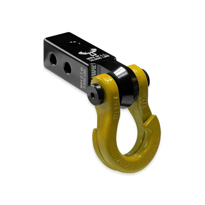 The Jowl Recovery Shackle fits any 2.0 or 2.5 inch D-Ring tow shackle receiver hitch bracket mount with a 7/8" (0.875") pin hole and a mount width of 1-1/4" (1.25") or less.