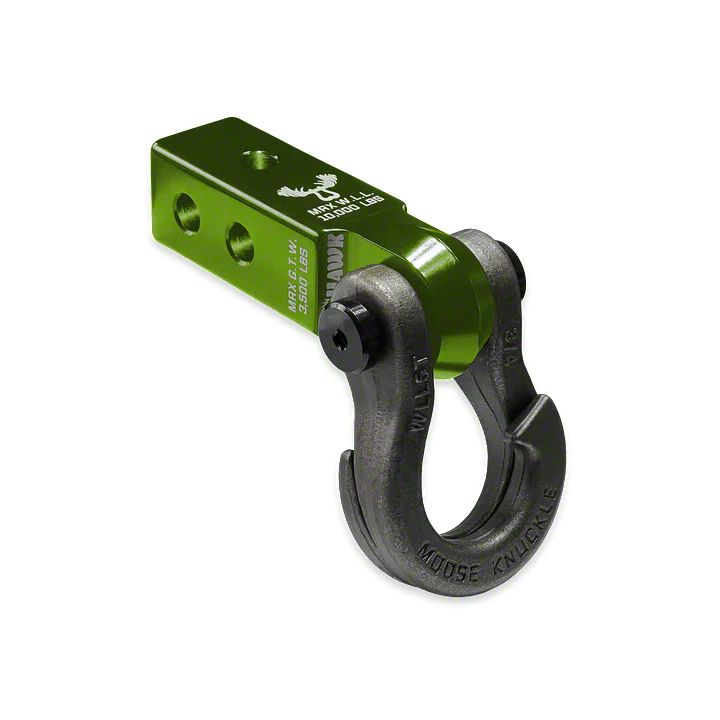 The Jowl Recovery Shackle fits any 2.0 or 2.5 inch D-Ring tow shackle receiver hitch bracket mount with a 7/8" (0.875") pin hole and a mount width of 1-1/4" (1.25") or less.