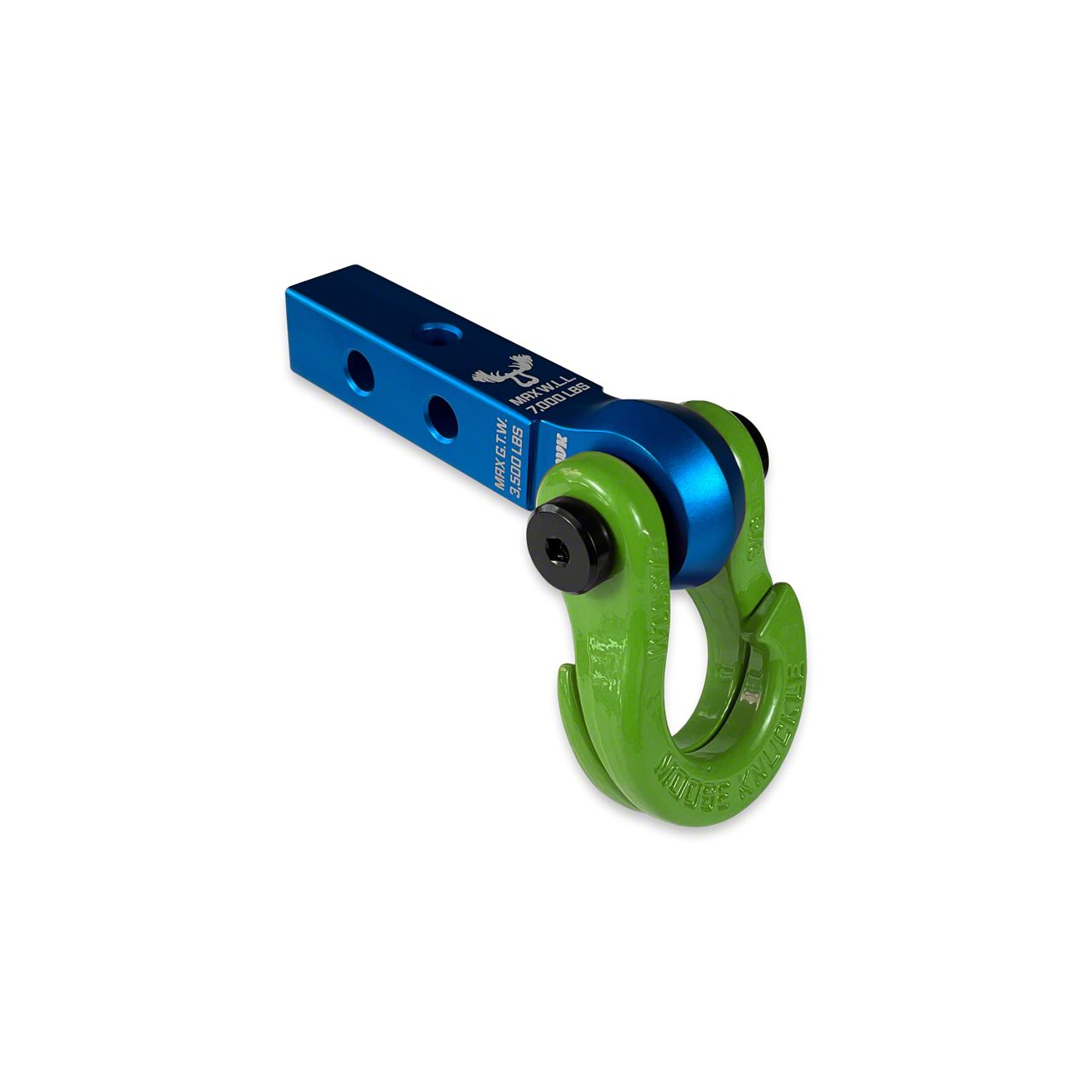 Moose Knuckle Offroad Jowl Split Shackle 5/8 / Mohawk 1.25 Receiver Combo; Blue Pill/Sublime Green
