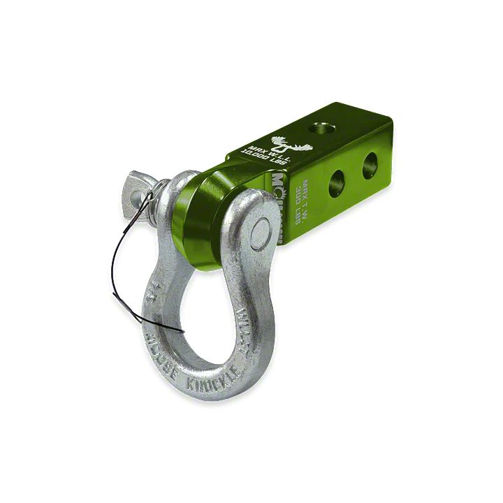 The Moose Knuckle Offroad B'oh Shackle fits any bumper shackle mount or tow shackle receiver hitch bracket mount with a 7/8" (0.875") pin hole and a mount width of 1-1/4" (1.25") or less.