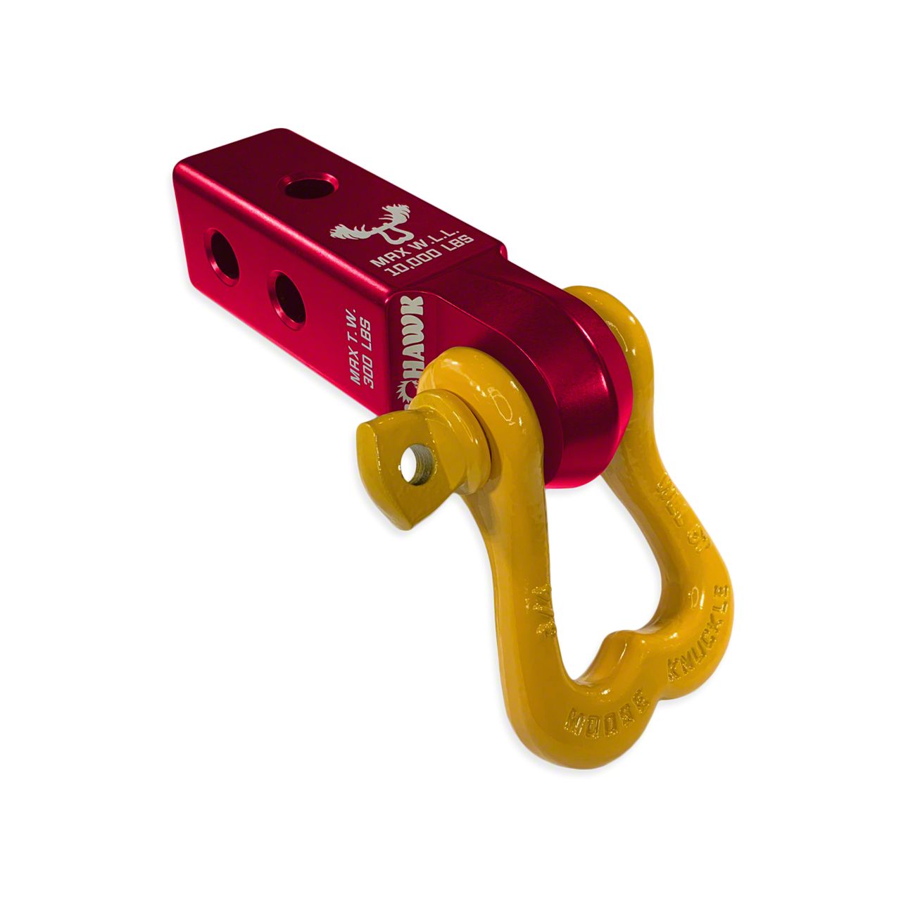 The Moose Knuckle XL fits any 2.0 or 2.5 inch D-Ring tow shackle receiver hitch bracket mount with a 7/8" (0.875") pin hole and a mount width of 1-1/2" (1.25") or less.