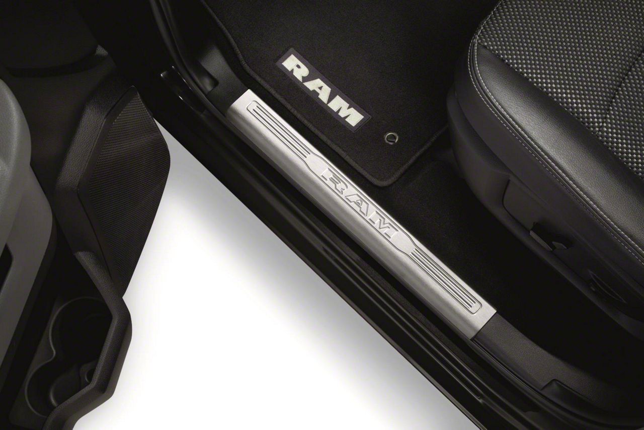 Stainless Steel Construction. These Mopar Door Sill Guards with the RAM Logo are made of durable stainless steel. Even when exposed to harsh driving conditions, these door sill guards will be able to tough it out while maintaining their pristine condition. Furthermore, they come in a brushed stainless finish, giving your truck impressive looks and superior resistance against rust and corrosion.
